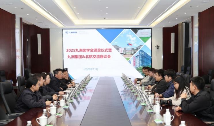 随后进行2025年九洲奖学金颁奖仪式,九洲集团党委副书记对师生一行表示欢迎,向师生介绍了集团的基本情况,并为2025年度九洲奖学金获得者颁发了证书。