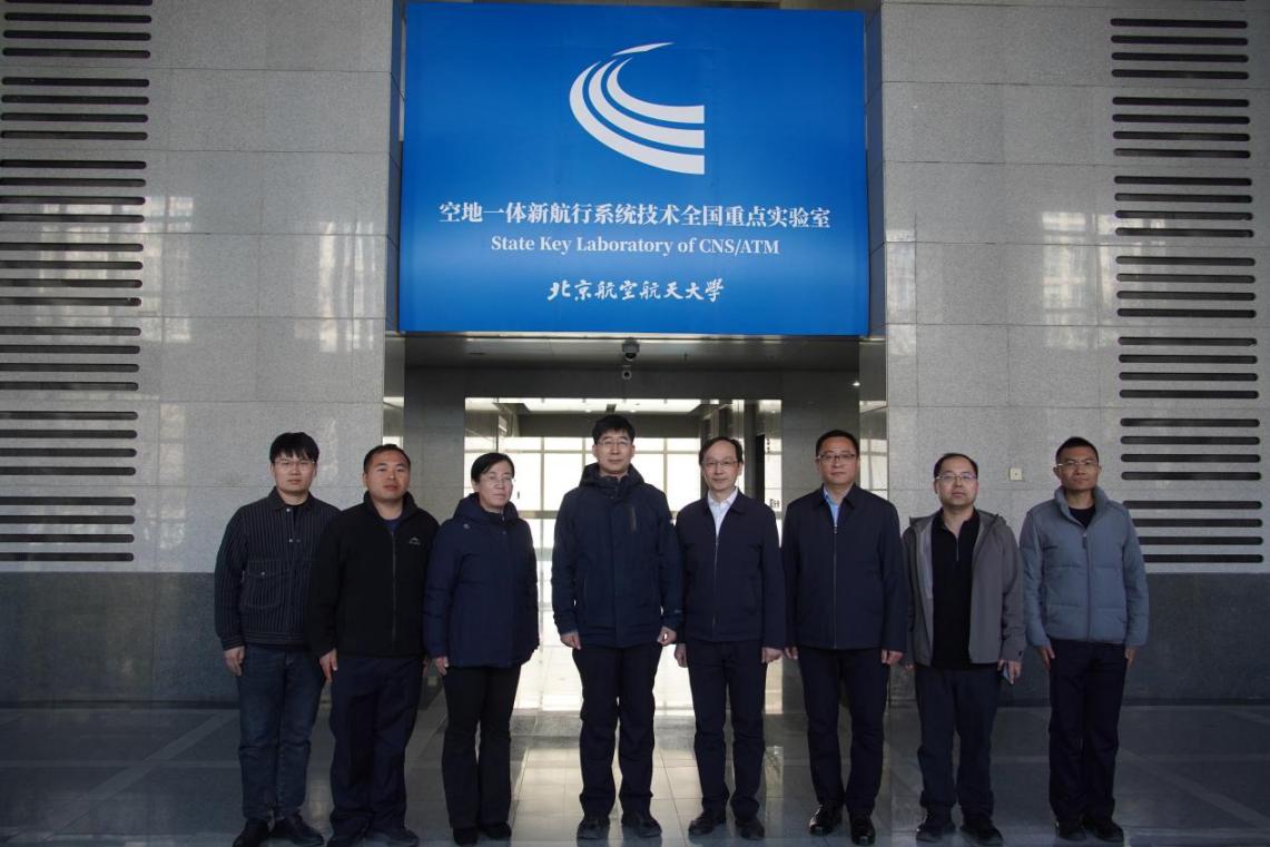 一行人员参观考察我院空地一体新航行技术全国重点实验室。蔡开泉副院长详细介绍了实验室的研究方向、任务目标及其在支撑教学科研工作中取得的显著成效。